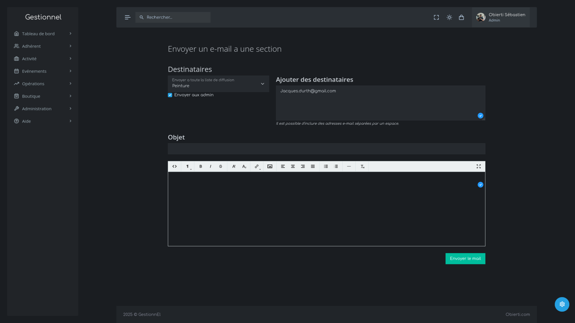 Envoyez des mails directement depuis l'application à une liste ou à un adhérent.